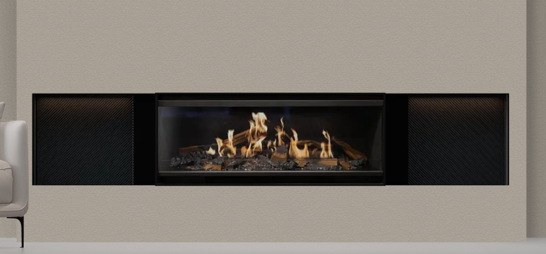 Flame-Map Technology projects and maps holographic flames with millimetre precision onto lifelike logs and embers – recreating the depth, movement, and authenticity of a real wood-burning fire.​