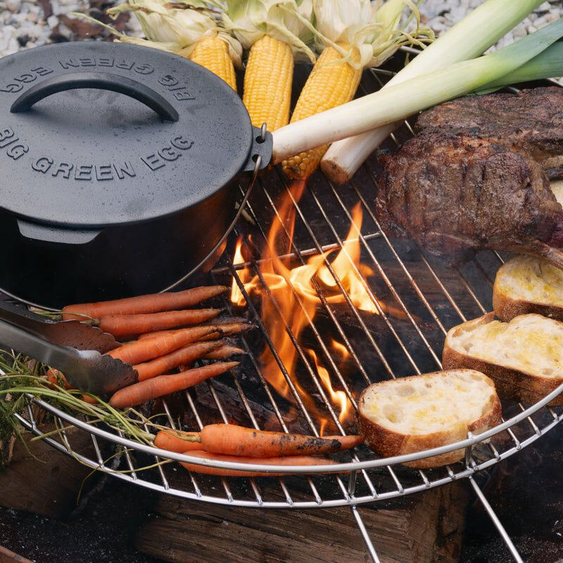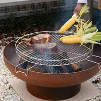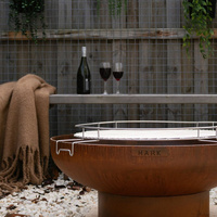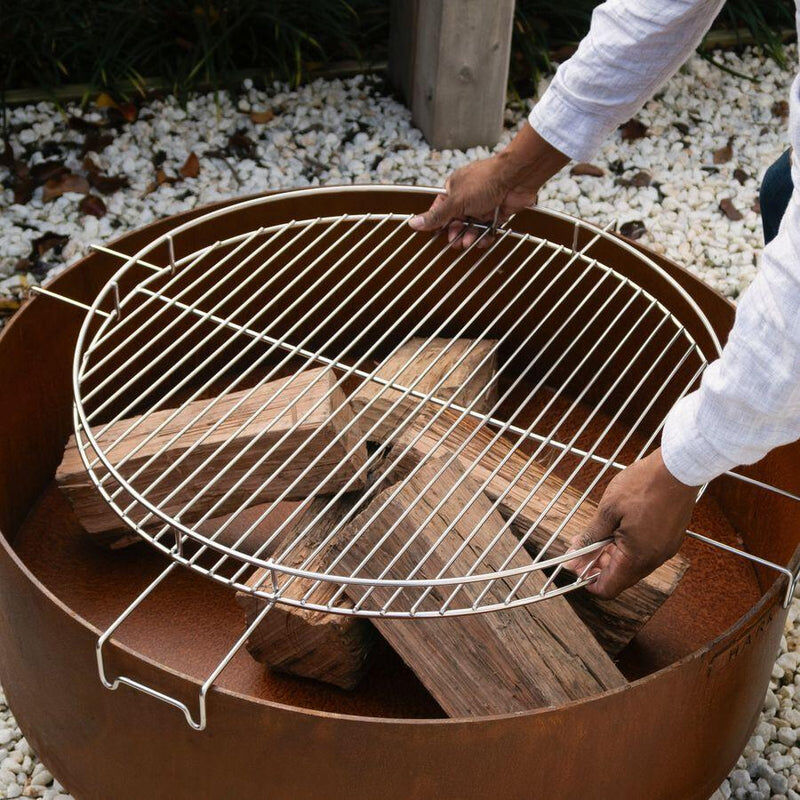 Turn our Hark Corten Steel Fire Pits into a BBQ instantly with our Cooking Grate, offering a unique live fire cooking experience at home.