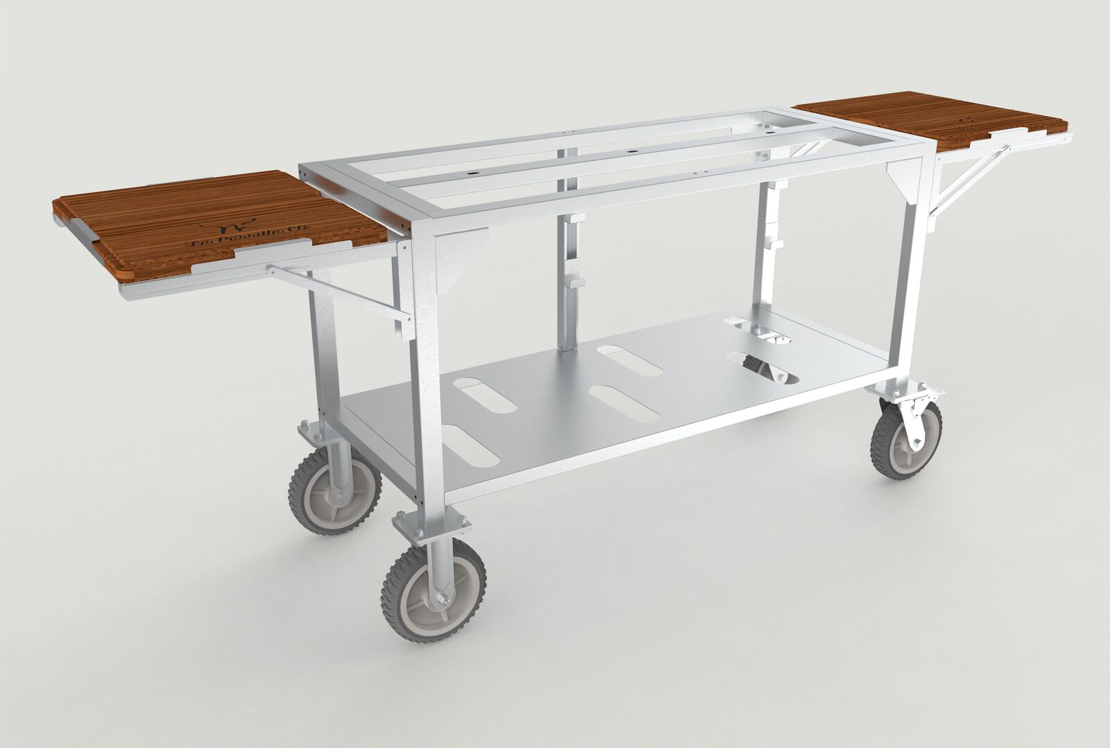 The Parrilla stand is made from 304 grade stainless steel and solid construction. Comes equipped with heavy-duty wheels designed for maximum durability and convenience.
