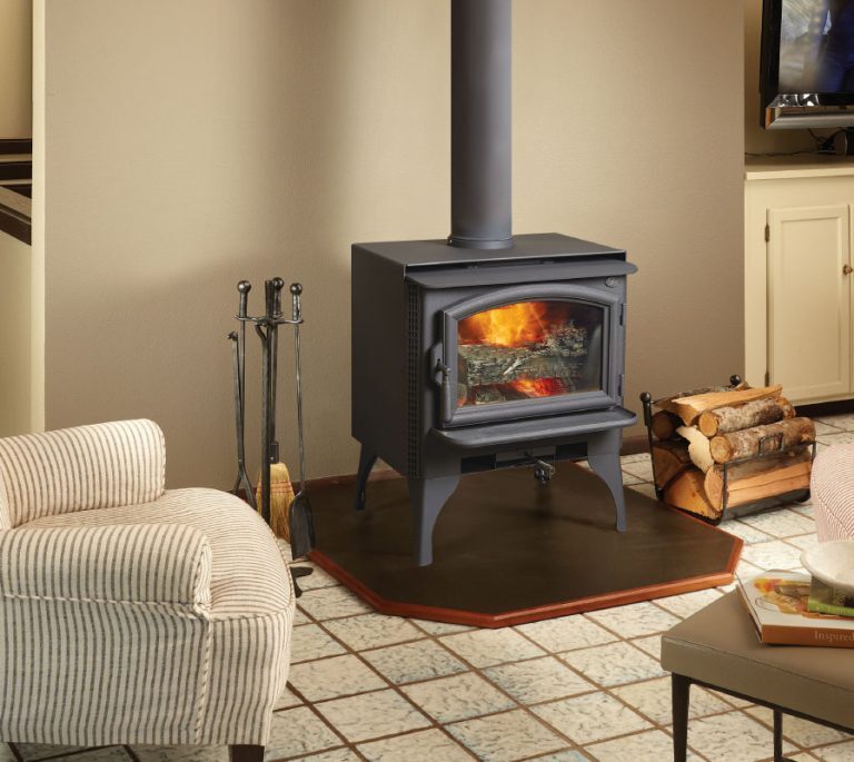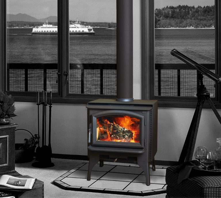 It may be small, but the Answer 2020 compact size belies its incredible heating capacity. The Answer uses a five-sided convection chamber to distribute heat evenly throughout your home. Cool room air is naturally drawn around the hot firebox, heated, and returned back into the room without using a blower. The Answer’s .05 cubic metre firebox is larger than most other small stoves, so it offers longer burn times with less reloading. The large viewing area and easy to use door handle design make this an impressive heater both in looks and performance.