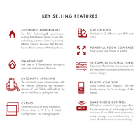 Etlis combines innovative BEV® technology with a sleek linear design to deliver real, clean‑burning flames without the need for a flue or hard connection. Its automatic fueling system, adjustable flame heights and simple canister replacement make it effortless to use every day. Designed for versatility, it fits seamlessly into a wide range of interiors while maintaining exceptional safety standards.